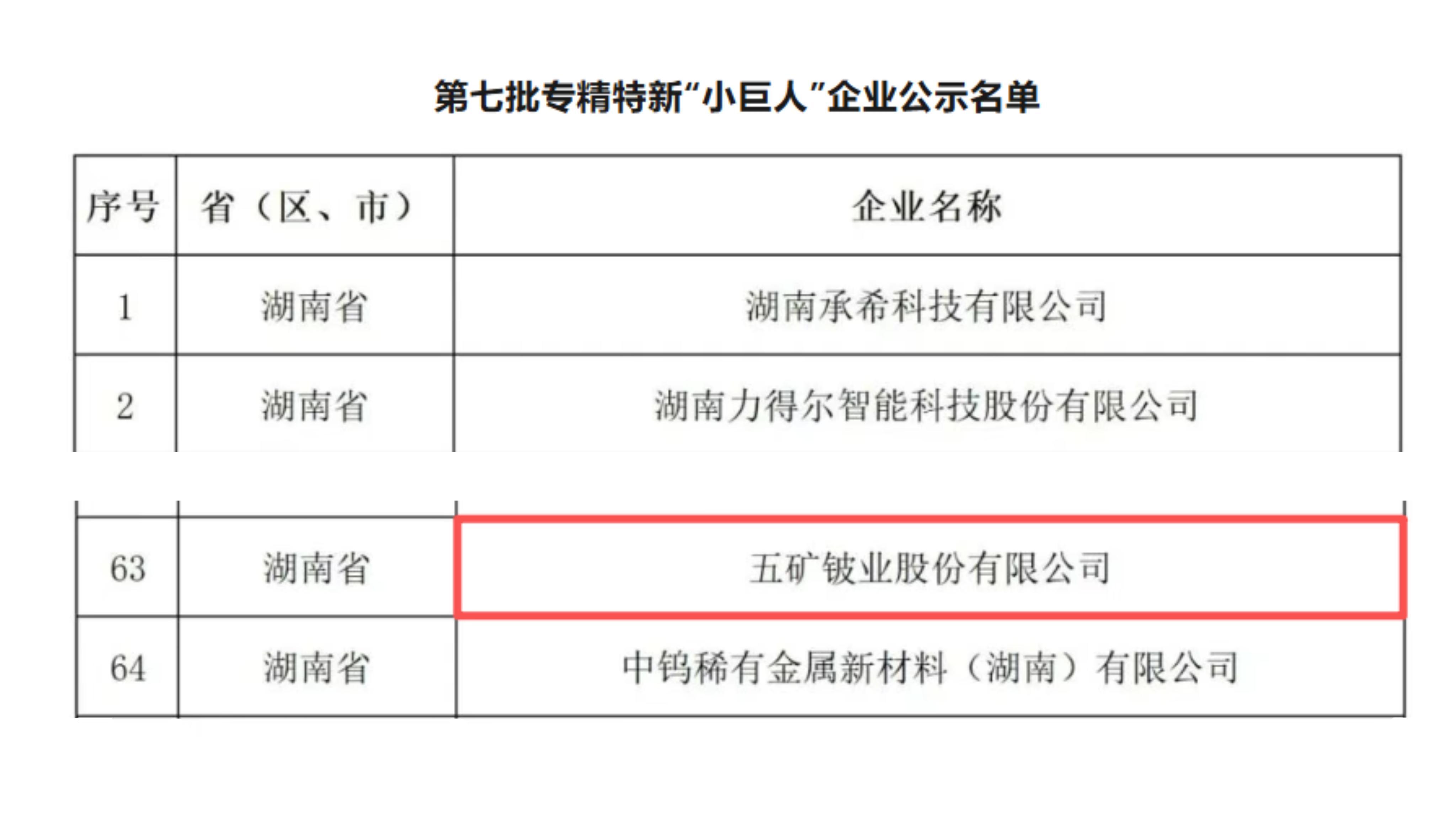 近日,五矿铍业成功入选国家工业和信息化部公布的第七批国家级专精特新“小巨人”企业名单,标志着五矿铍业在专业化程度、技术创新实力和市场地位等方面获得国家层面权威认可。