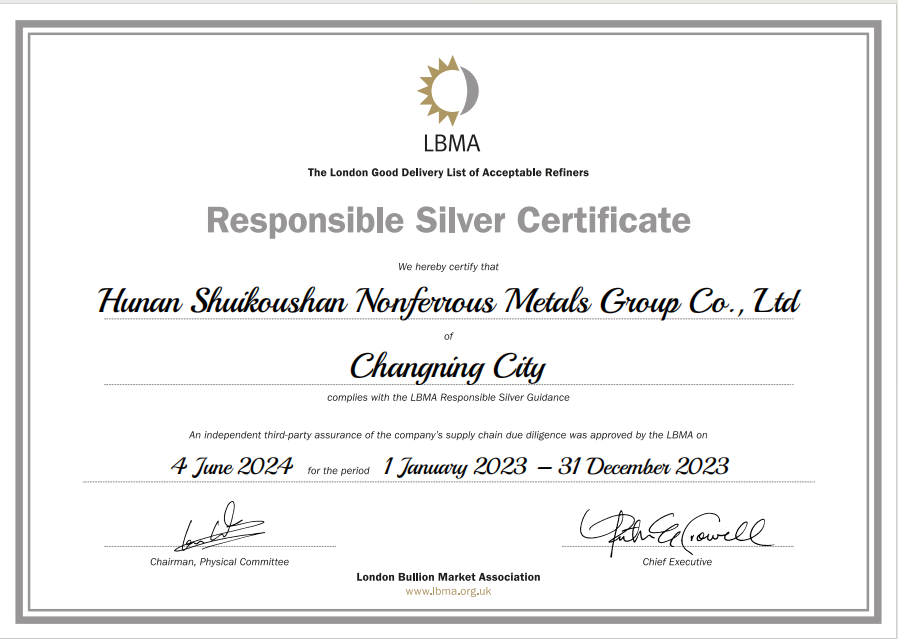 LBMA是全球最大的黄金和白银市场标准制定者和行业监管者,获得LBMA标准认证的产品,可更为通畅地进入国际市场。本次通过LBMA认证,是公司产品质量、交易流程、风险管理及客户服务水平达到国际一流水平的具体体现,将进一步强化水口山公司在市场竞争中的品牌优势。