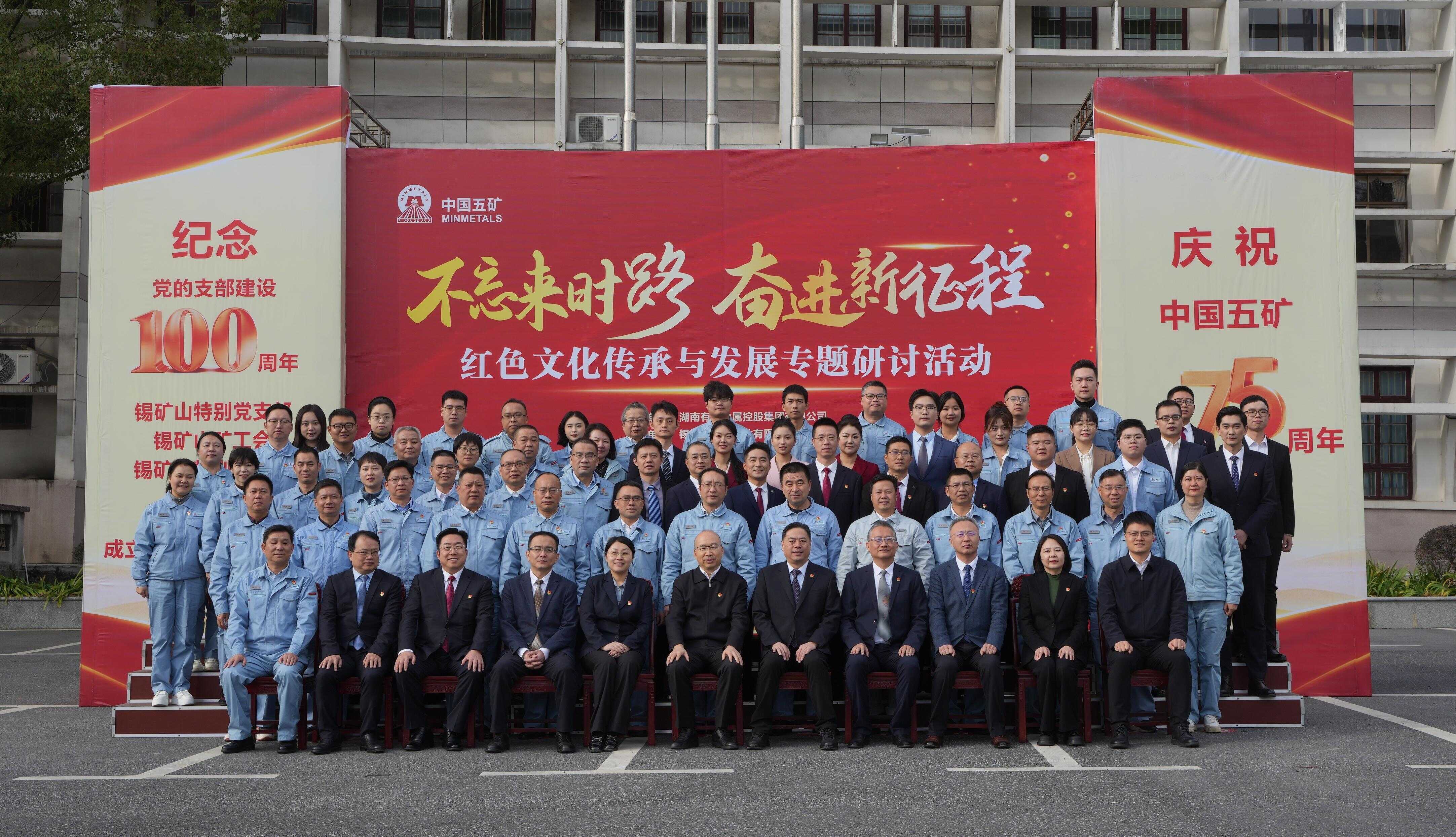今年是党的支部建设100周年、中国五矿成立75周年、锡矿山特别党支部成立100周年,举办此次专题活动旨在进一步赓续红色血脉、凝聚奋进力量,推动企业实现高质量发展。活动期间,与会人员瞻仰了锡矿山革命烈士陵园,参观了锡矿山展览馆、百年老采矿场遗址、羊牯岭碉楼,以及锡矿山生态修复示范区、采选厂文化阵地、精细冶金厂智能化生产线,现场感受了锡矿山百年文化底蕴和传承发展实践。