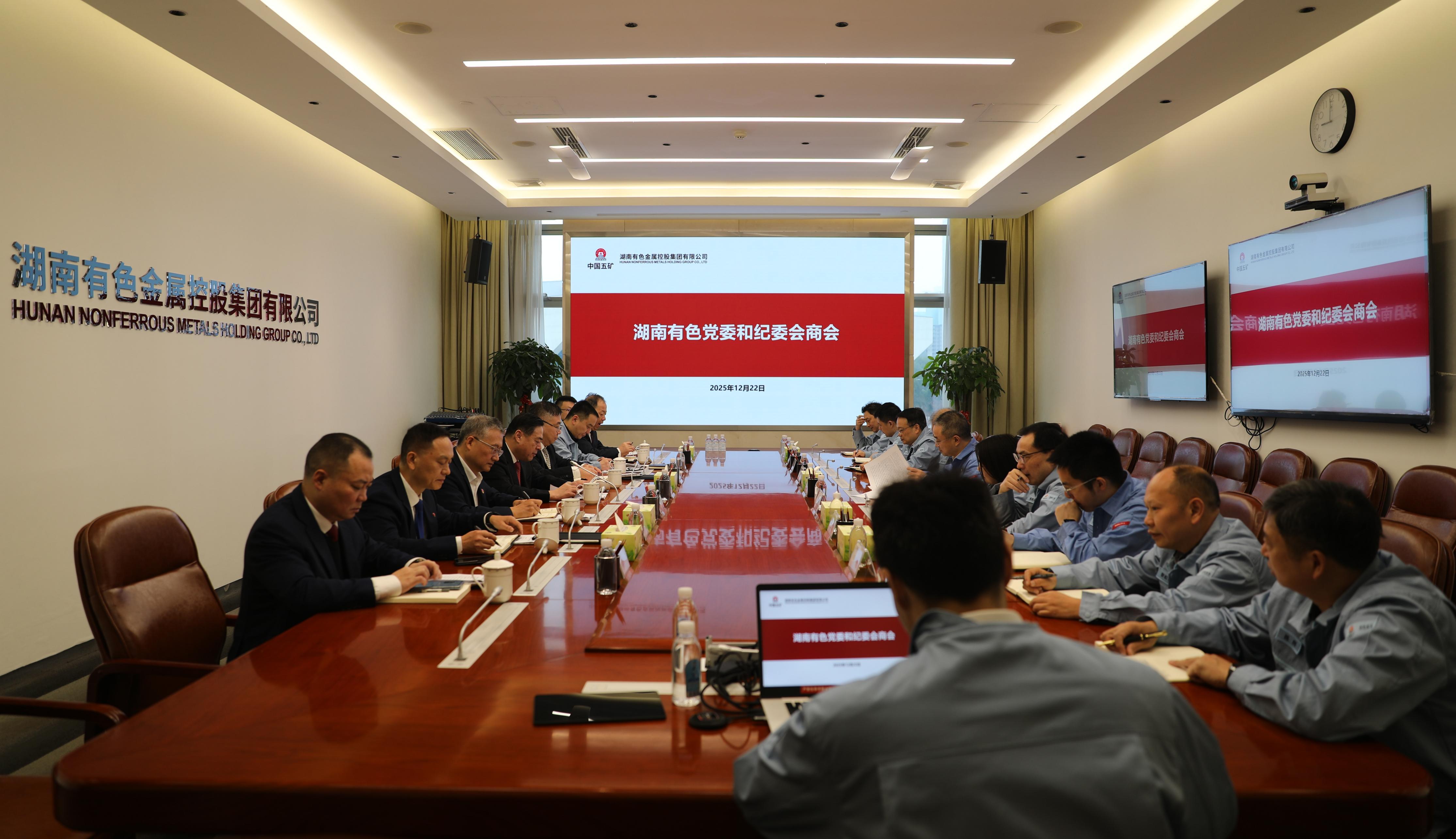 12月22日,湖南有色召开党委和纪委专题会商会,深入贯彻落实派驻改革文件精神,分析研判公司党风廉政建设和反腐败工作形势,纵深推进全面从严治党、从严治企。公司党委书记、董事长曲阳主持会议并讲话,公司党委委员、纪委委员、相关部门负责人参加会议。