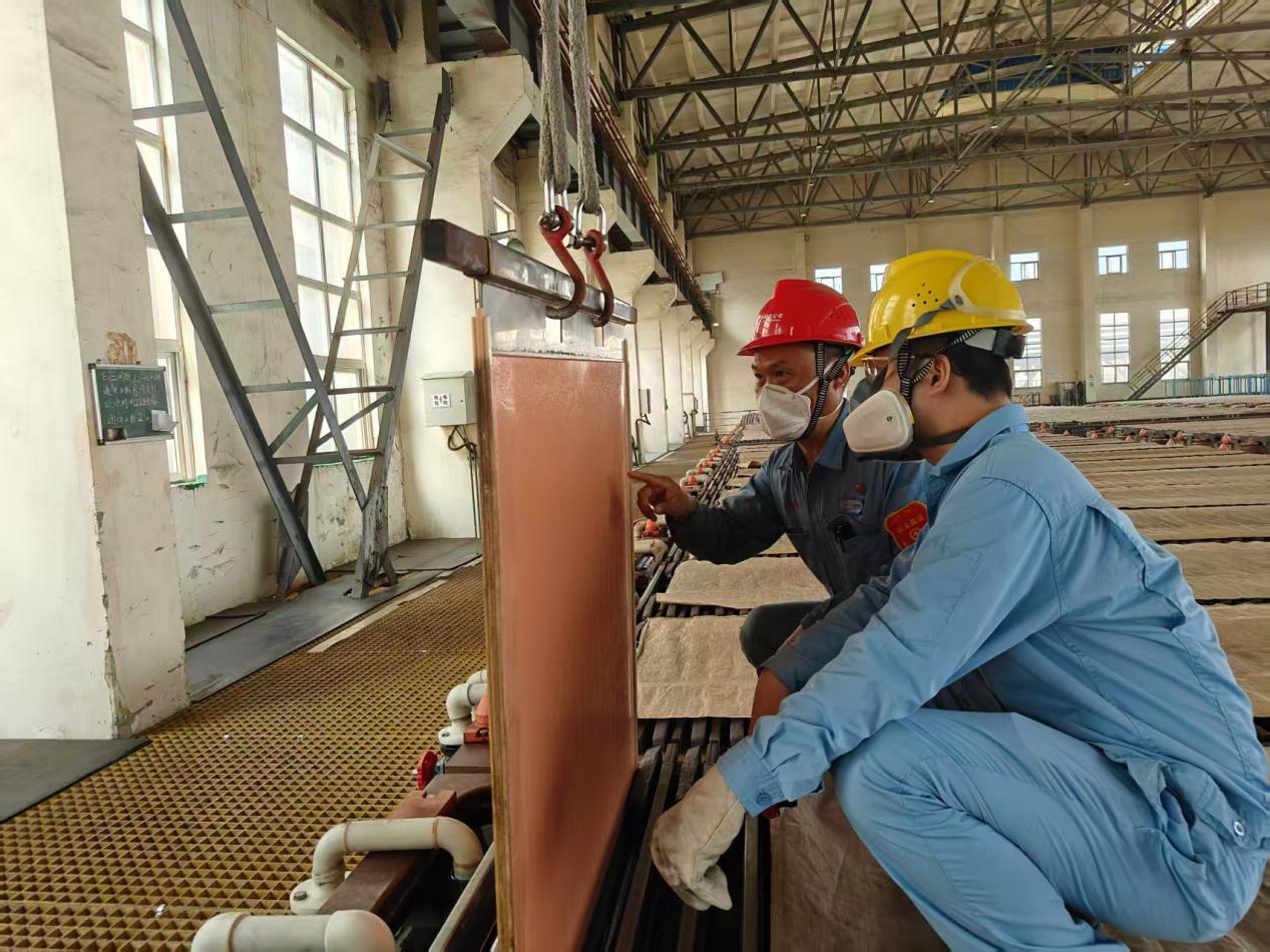 陆珍松在给徒弟传授湿法电解技术